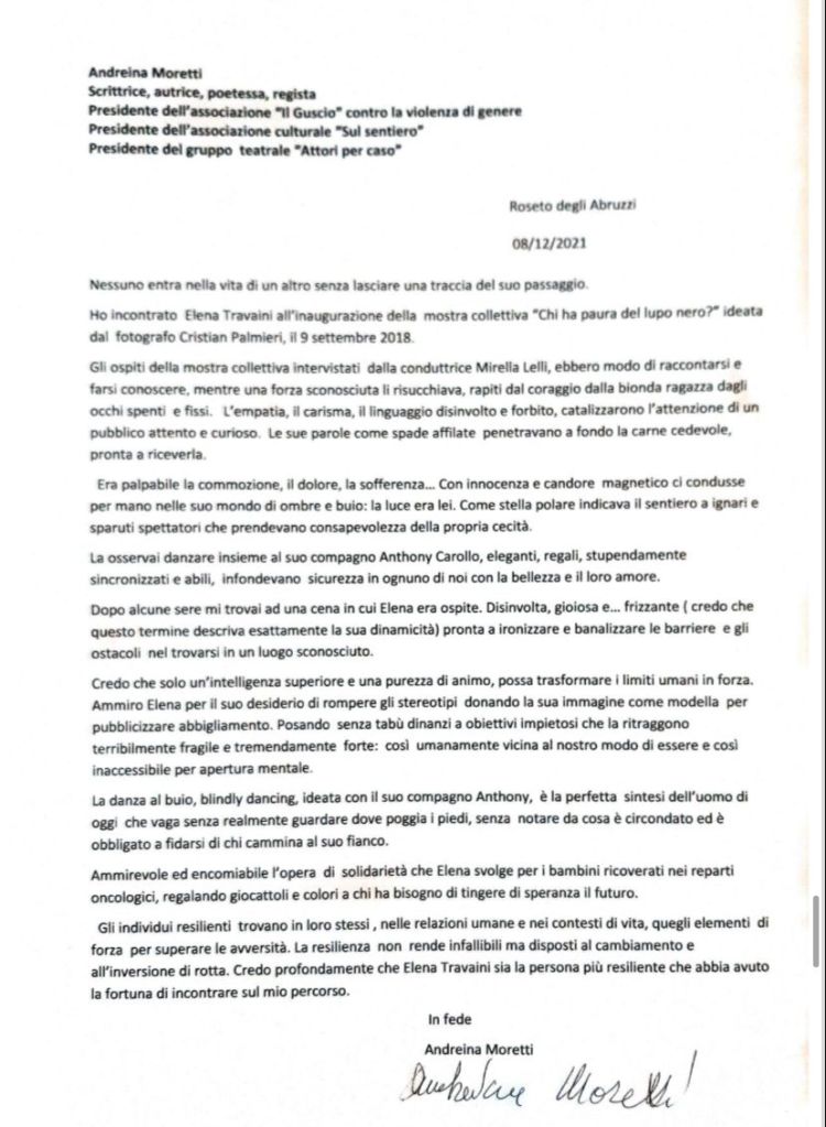 Ballerina professionista, modella e life coach, che a causa di un rarissimo tumore alla retina scoperto a 20 giorni dalla sua nascita, l’ha resa quasi completamente non vedente e diversa esteticamente.